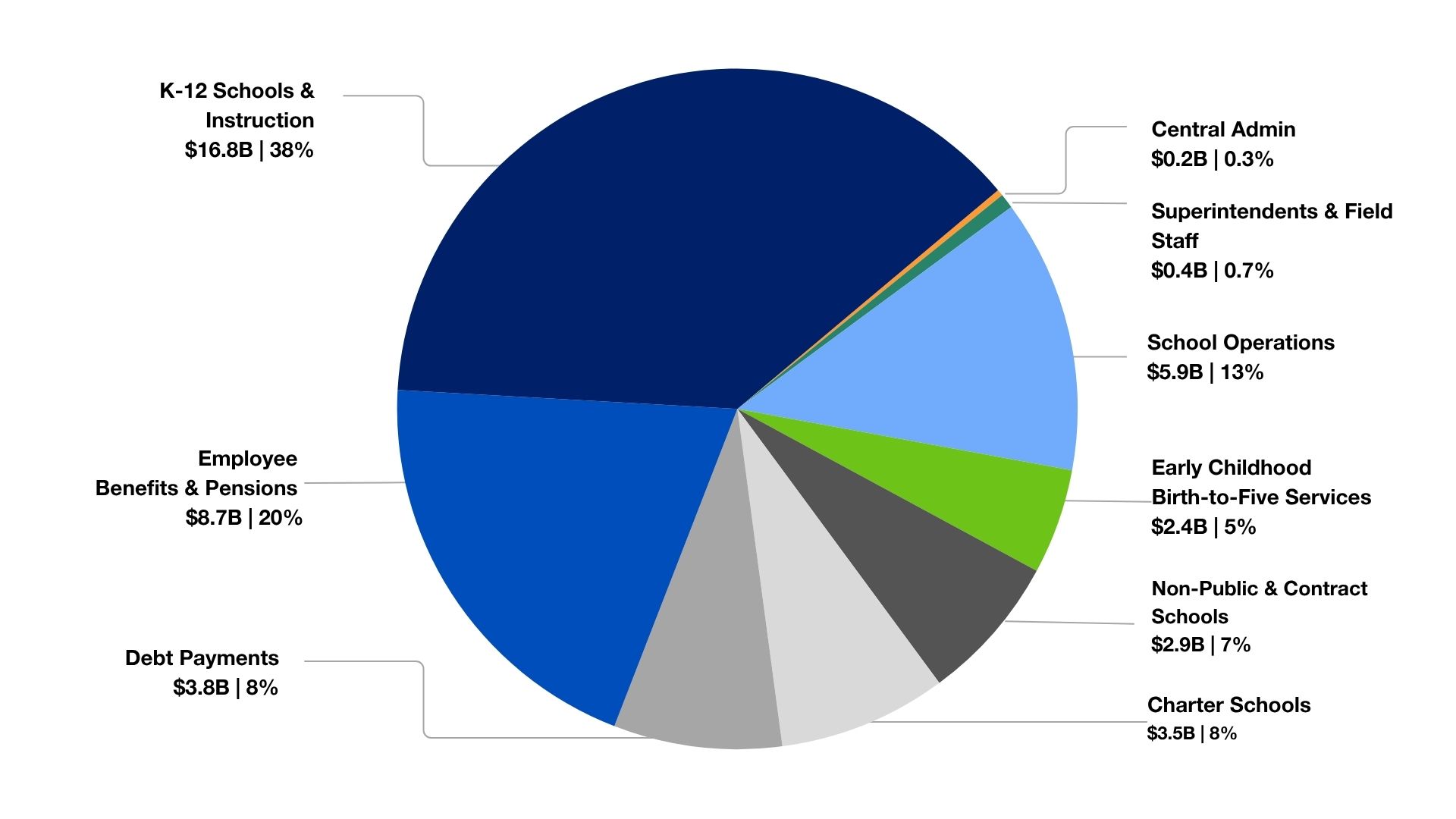 NYC Public Schools' 44.6 billion budget is spent as follows: