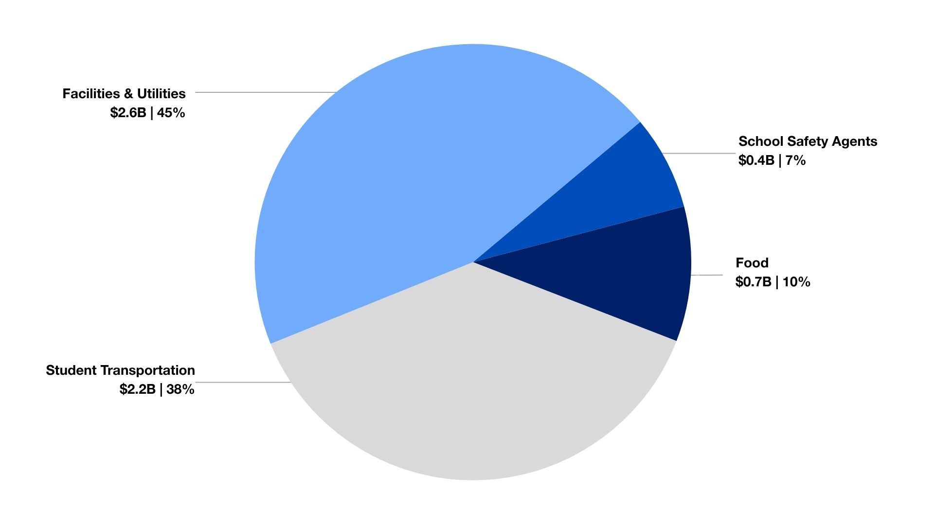 - $2.2 billion - Student Transportation. This includes operating roughly 9,500 bus routes, serving 152,000 students across the city and beyond.